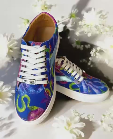 South African artist Jana Aspeling’s original paintings are transformed into bold textiles, brought to life on fashion-forward sneakers by Ten Feet — designed and made in South Africa, by women for women.